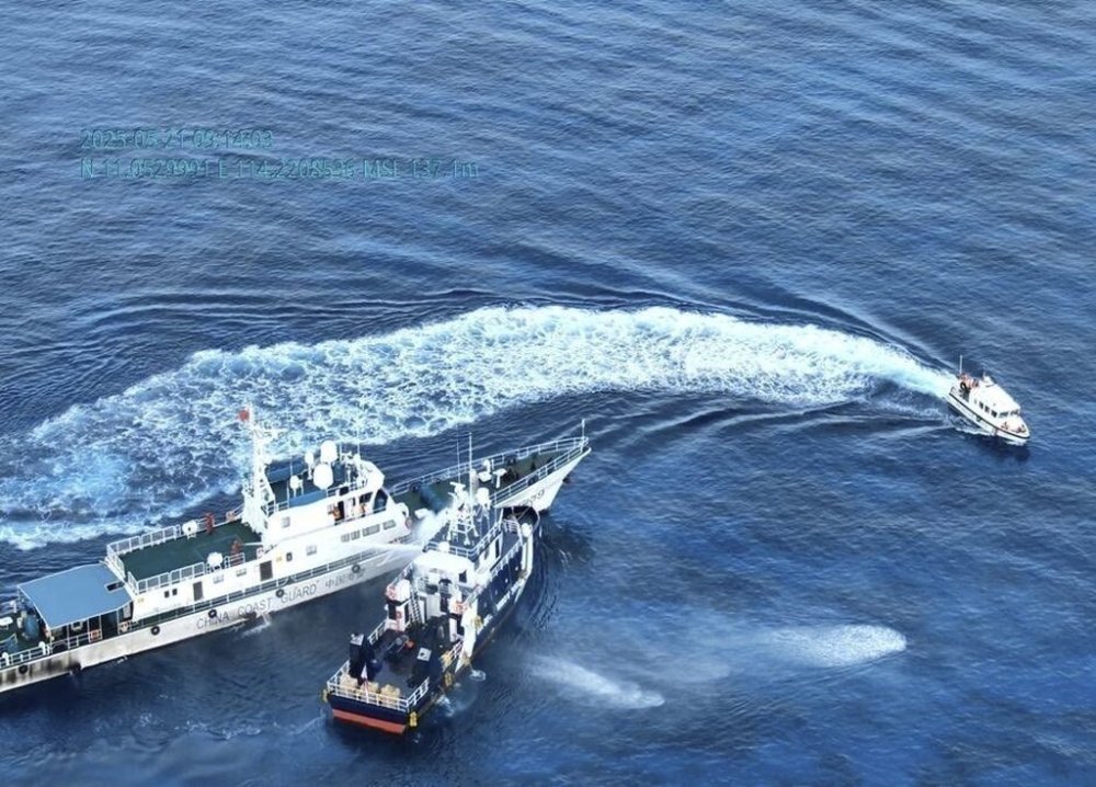 A larger Chinese coast guard ship “water cannoned and sideswiped” one of the vessels twice, “resulting in some damage to the latter’s port bow and smokestack and putting at risk lives of its civilian personnel onboard,” the Philippine officials said.