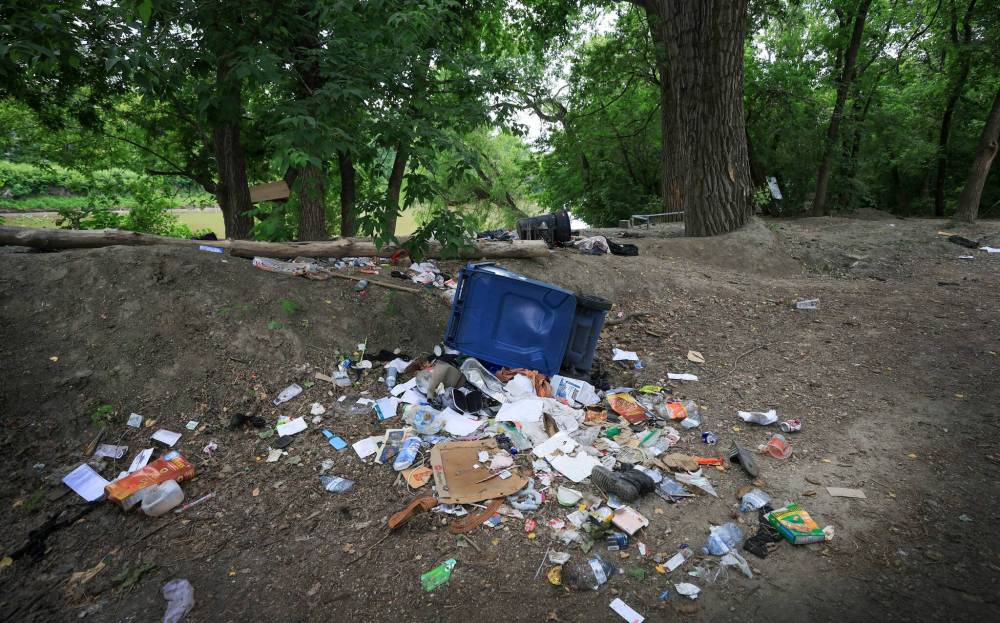 By Thursday afternoon, garbage still littered the area, and a city worker could be seen collecting discarded needles.