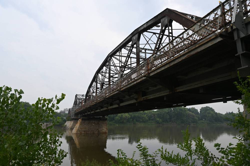 MATTHEW FRANK / FREE PRESS The 115-year-old bridge, which crosses the Red River at Stadacona Street and Higgins Avenue, is now expected to remain closed until early September.