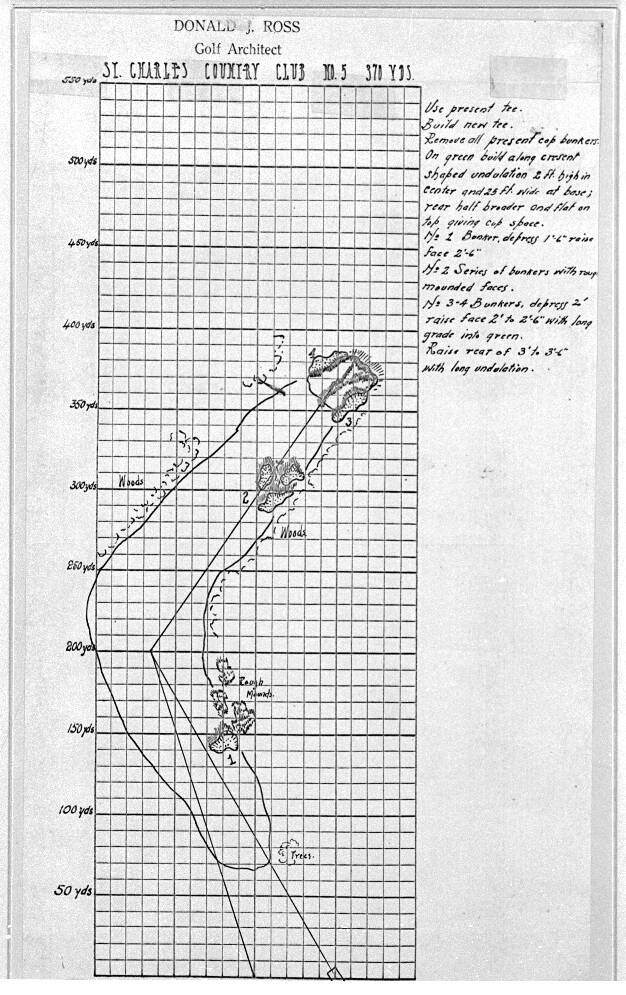 Inspired by the 12th green at Sitwell Park Golf Club in Sheffield, England (a course also designed by MacKenzie), Johns came up with the concept that utilized an untapped area of the property that was used for the collection and storage of grass clippings and trimmed branches.