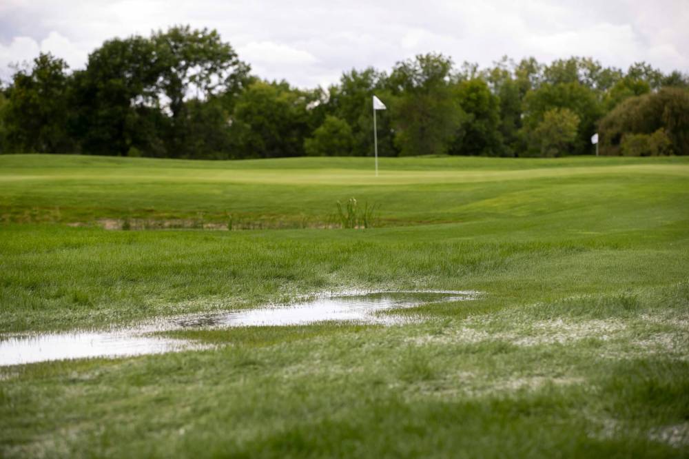BROOK JONES/FREE PRESS Breezy Bend Country Club in Headingley, Man., is hosting the Manitoba Open Aug. 21 to 24, 2025. Pictured: A waterlogged 17th hole fairway rough at Breezy Bend on Aug. 22.