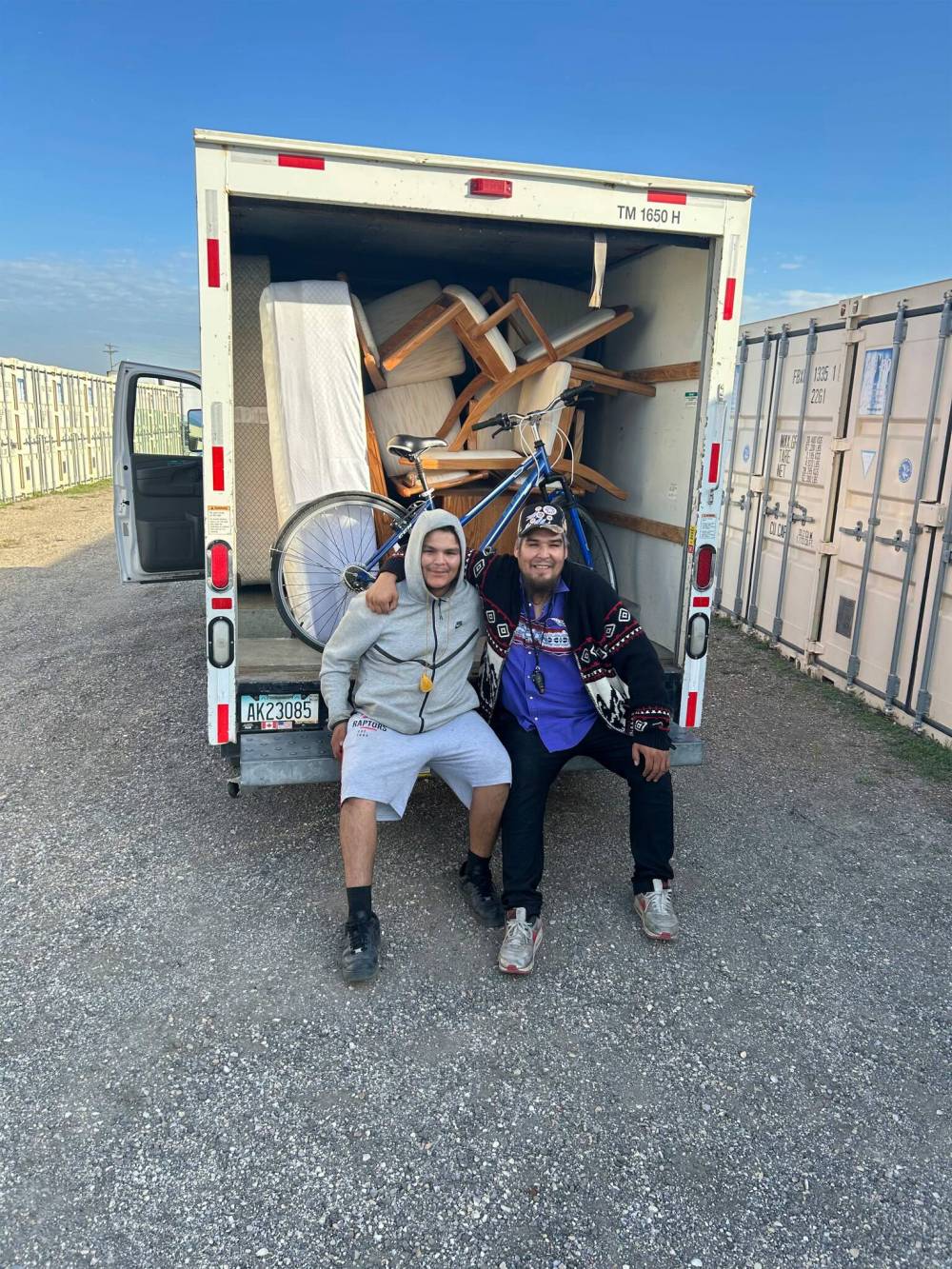 SUPPLIED Rob Baker (right) helped coordinate the delivery of supplies to Leaf Rapids evacuees earlier this week. Sixty mattresses, various furniture items, bags of clothing and food hampers made their way to the community Wednesday and Thursday.