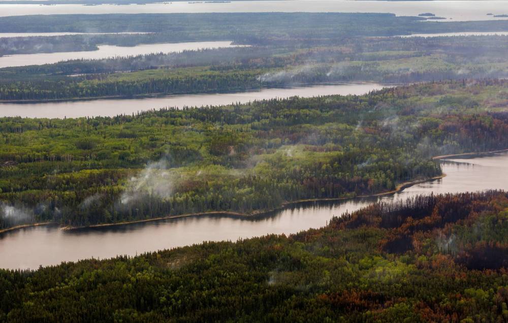 Media were given a helicopter tour of the wildfire conditions around Flin Flon in June. (Mike Deal / Free Press files)