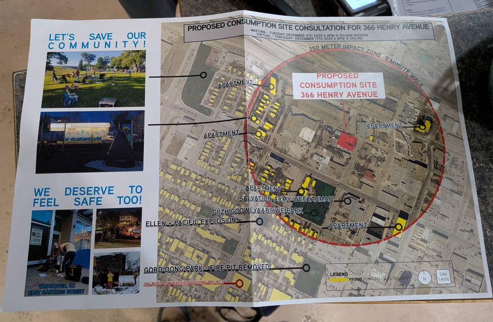 The government’s initial proposal to put a supervised drug site at 200 Disraeli Fwy., in Point Douglas, was abandoned in September after residents said it would be too close to schools and daycares. Some described the government’s consultation with the community as insufficient.