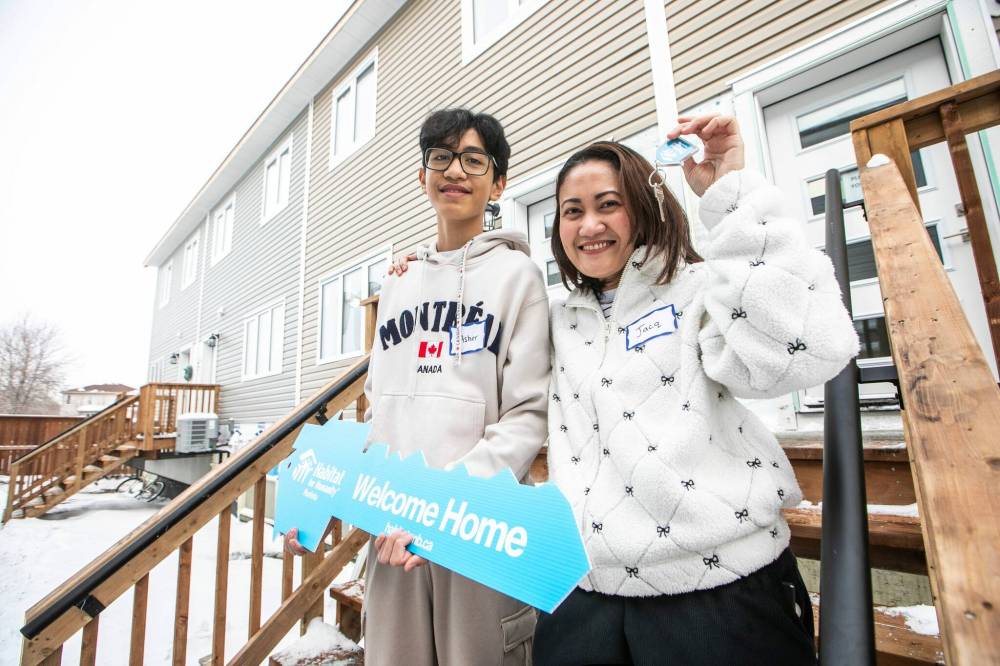 The Winnipeg woman and her 14-year-old son, Asher, were one of five families who received keys to their new homes this month from Habitat for Humanity.
