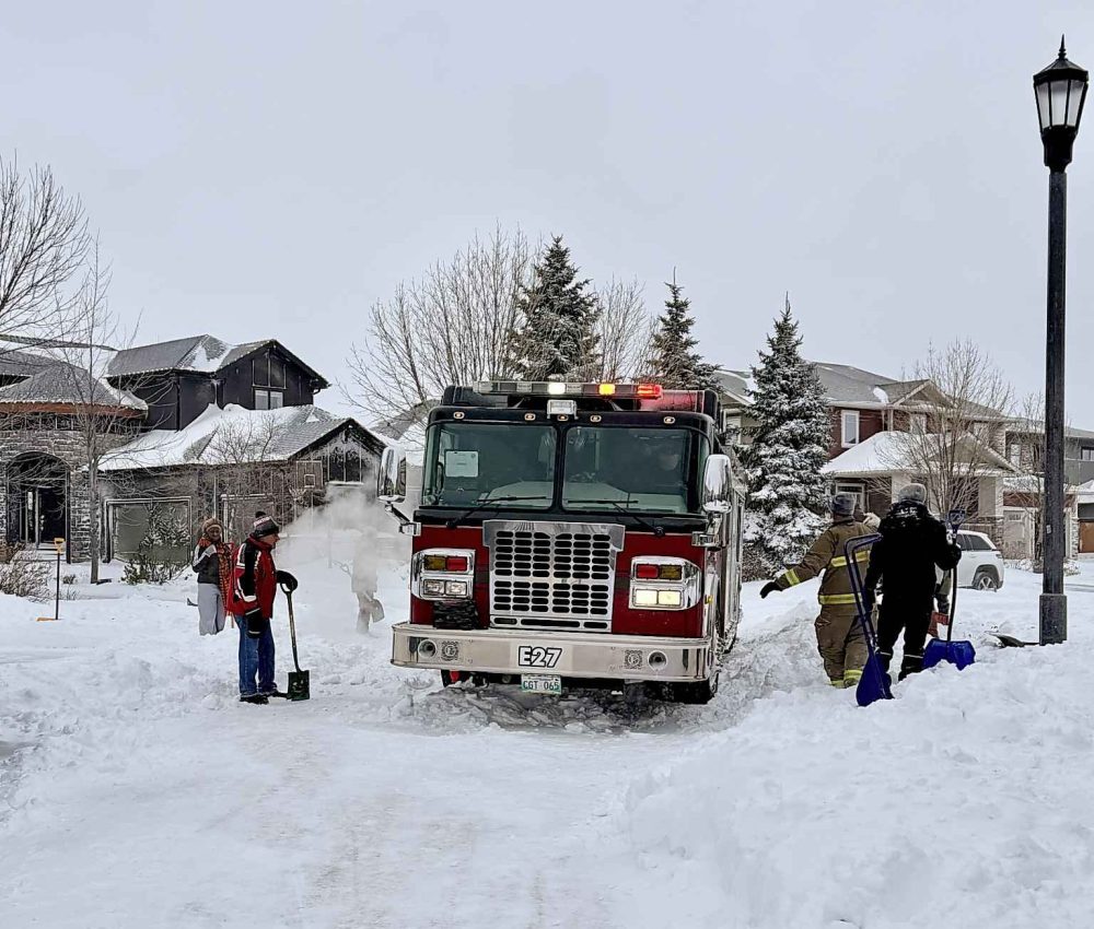 A show of neighbourly kindness helped free a fire truck and an ambulance responding to a call in Sage Creek during a blizzard Thursday.