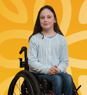 Thanks to donor generosity, Claire is able to access expert and life-changing support from the Rehabilitation Centre for Children. She is cared for by dedicated professionals who support her mobility through wheelchair and walker adjustments, orthotic leg supports and monitoring her condition regularly. The specialized help she receives ensures Claire remains active, stays healthy and as independent as possible.