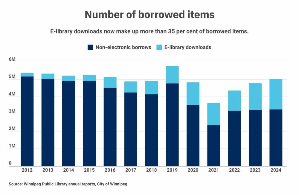 In-person visits to the city’s 20 library branches in 2025 increased 28 per cent from 2022, the first year visits began to rebound after the COVID-19 pandemic, but they have yet to return to the “before” times.