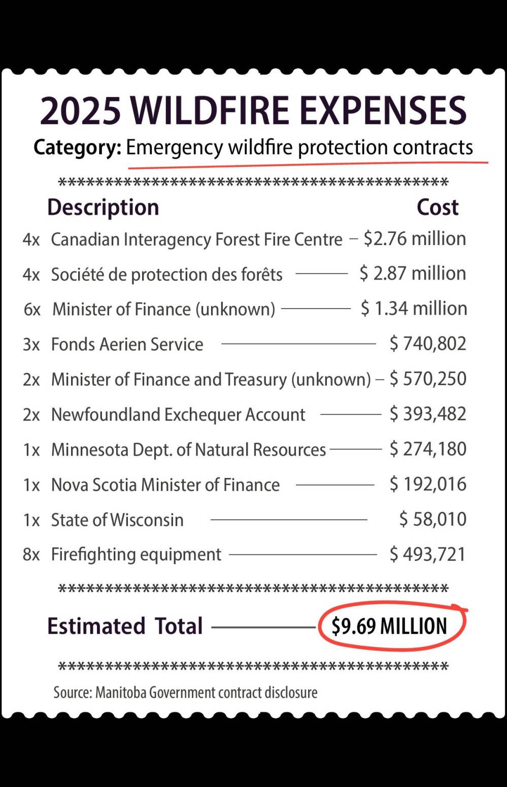 The Société de protection des forêts contre le feu, a non-profit fire protection agency based in Quebec, received about 40 per cent of those funds. The agency sent more than 150 firefighters from Quebec and France, as well as provided logistics support, through June and July. While Manitoba’s records show contracts totalling $2.8 million, the agency’s annual report indicates it billed Manitoba for more than $5.1 million in 2025. This suggests some out-of-province payments are not yet recorded in Manitoba’s contract records.