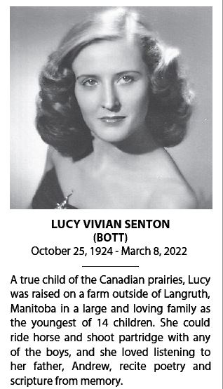 Lucy Senton grew up the youngest of 14 on a farm near the west side of Lake Manitoba.