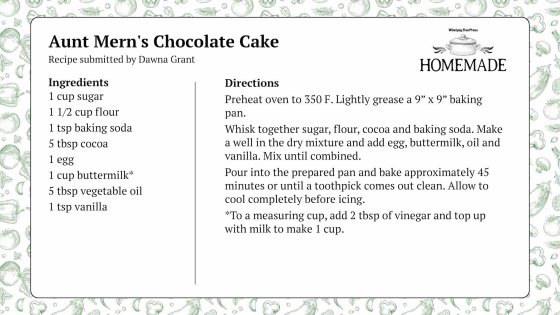Homemade is a Free Press project celebrating home cooking in Manitoba. Want to share a recipe with readers? Visit wfp.to/homemade to fill out the submission form.