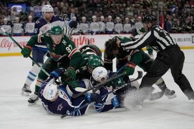 Minnesota Wild’s Brock Faber is averaging 27:30 of ice time per game this month (Michael Dwyer / The Associated Press files)