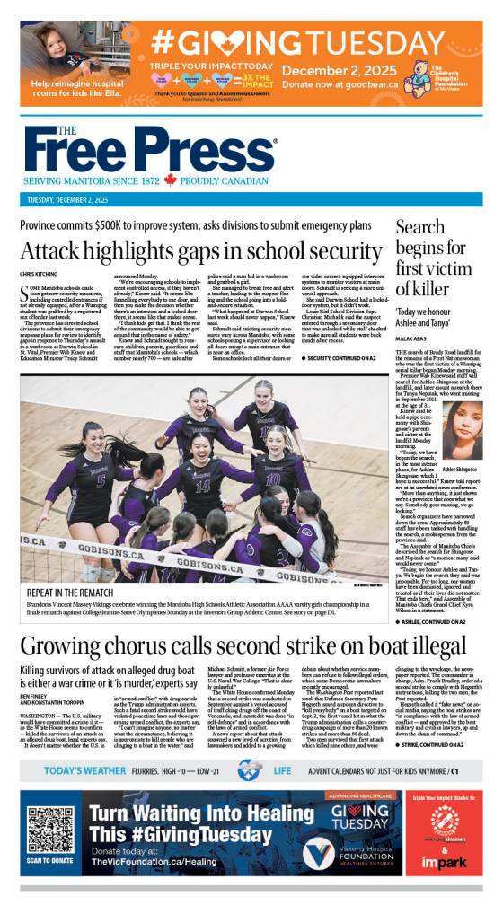 The province has directed school divisions to submit their emergency response plans for review to identify gaps in response to Thursday’s assault in a washroom at Darwin School in St. Vital, Premier Wab Kinew and Education Minister Tracy Schmidt announced Monday.