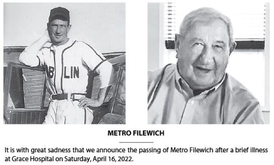 Metro Filewich was born in Roblin, Man. and was a good baseball player.