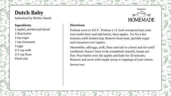 Homemade is a Free Press project celebrating home cooking in Manitoba. Want to share a recipe with readers? Visit Homemade to fill out the submission form.