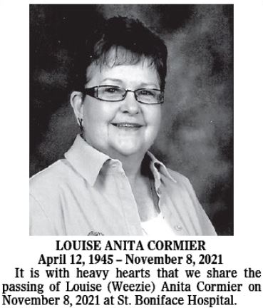 Cormier, who was 76 when she died on Nov. 8, lived on a farm near La Salle before moving to Winnipeg and later becoming a LPN at St. Boniface Hospital.