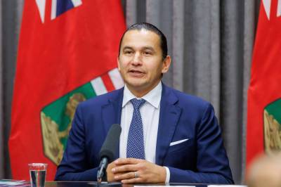 Canadian astronaut Chris Hadfield (left) and Free Press editor Paul Samyn discuss Hadfield’s writing, his career and his new book at the Winnipeg Art Gallery last week. (Brook Jones / Free Press)