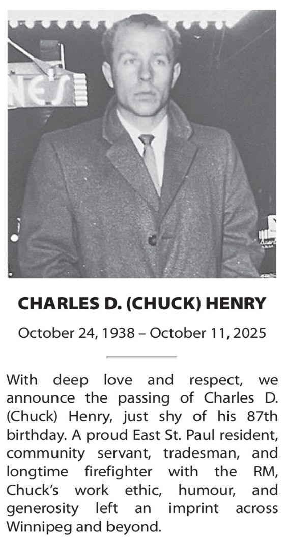 In his professional life, Chuck, who was 86 when he died on Oct. 11, was a gas fitter. But for 33 years he was a volunteer member of the East St. Paul Fire Department.