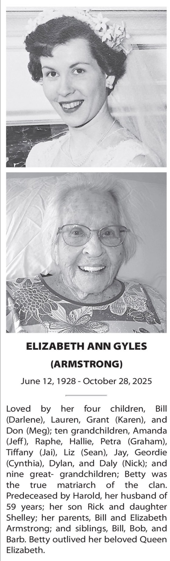 Betty, who died on Oct. 28 at 97 years of age, trained as a registered nurse at St. Boniface Hospital, but soon after she graduated she went on hiatus to raise her five children with her husband, Harold.