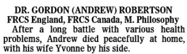 Robertson, who was 80 when he died earlier this month, was born in India and sent to England for school. He received his medical degree in 1964 and later specialized in plastic surgery.