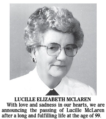 McLaren, who was 99 when she died, moved to Winnipeg from Neepawa straight out of high school to become a nurse.
