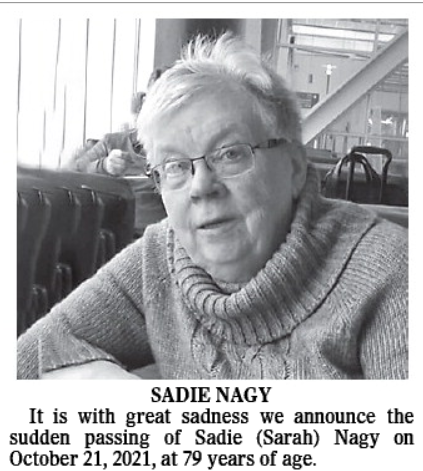 Nagy herself worked 45 years as a registered nurse at the Victoria Hospital.