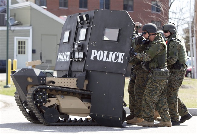 Police have been known to use robots with articulated arms to lift police shields in front of windows of houses to shield officers from gunshots fired from inside the home, said Corey Luby, of the National Tactical Officers Association, a Doylestown, Pa., organization representing patrol and special operations officers. Police also use armoured vehicles as shields to get close when hostages are being held or a suspect is barricaded inside a structure, he said.