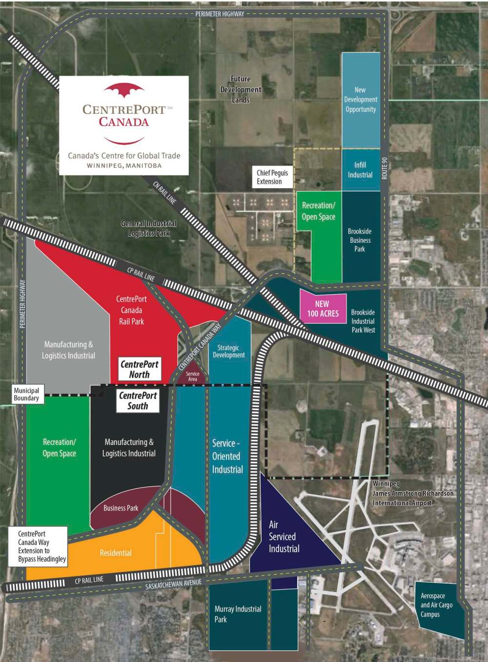 Under the auspices of the Inland Port Special Planning Area Act — passed a few years ago and operated by an authority chaired by the RM of Rosser with representation from the City of Winnipeg, the Winnipeg Airports Authority and CentrePort — it has responsibility for the land-use planning and zoning within CentrePort.