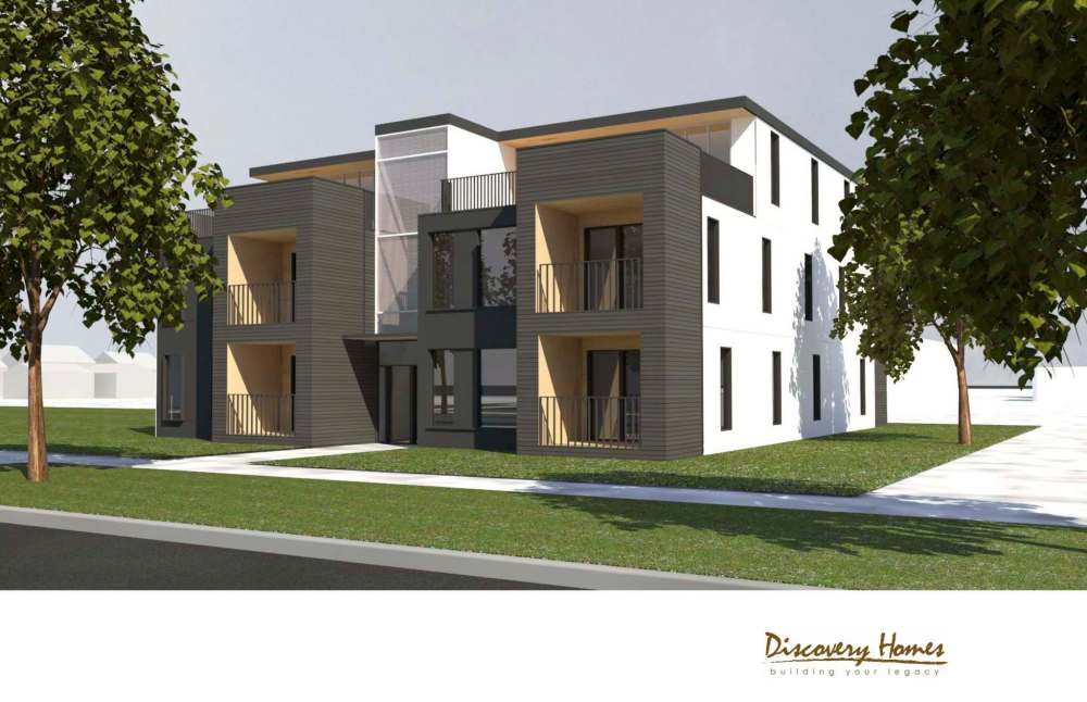 The proposed three-storey walk-up contemporary condo buildings will face Leola Street, with similar setbacks as the neighbouring single-family houses, Gordon Gray of Discovery Homes said. The development includes shared green spaces, garden areas for residents, a lockable bicycle storage and parking for 46 cars.