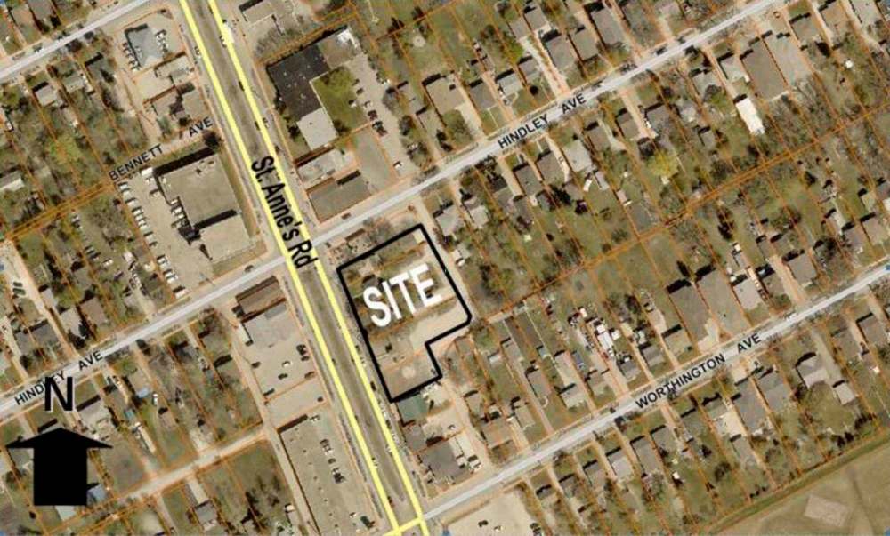 The proposed development site includes five lots at 469, 471, 473, 475 and 481 St. Anne’s Rd., southeast of the intersection of St. Anne’s Road and Hindley Avenue, and just south of the Dairy Delight restaurant.