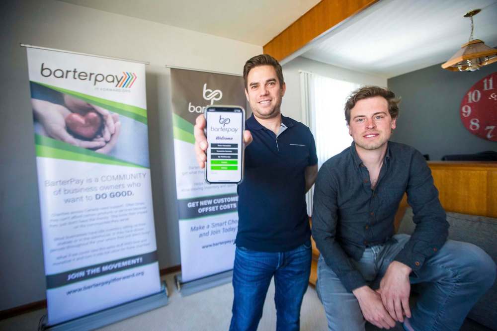 Mike Rosenby (left) and Chad Rempel are partners in the Manitoba franchise of national barter network called BarterPay. Rosenby said small and medium businesses are able to use barter credits via the network to offset some expenses.