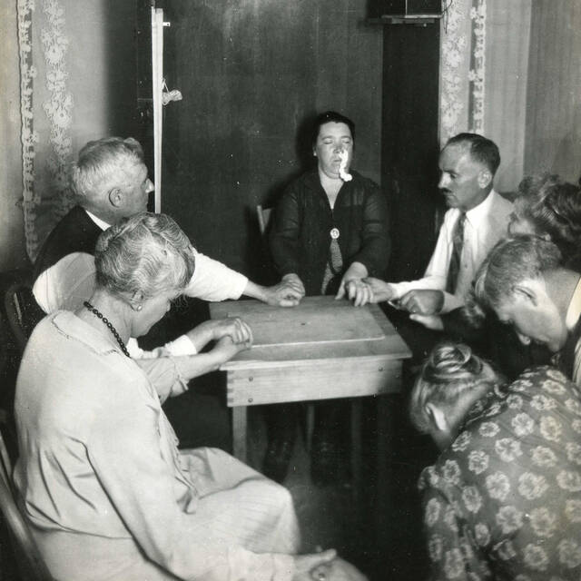 The Hamiltons conducted thorough experiments in telekinesis and table-lifting, photographing the parapsychological work in a room on the second floor. Their family nanny, Elizabeth Poole, was photographed levitating and inverting a table. Soon, work with mediums followed, and ectoplasm — a material emerging from the mouths and ears of mediums — was captured on film, supposedly.