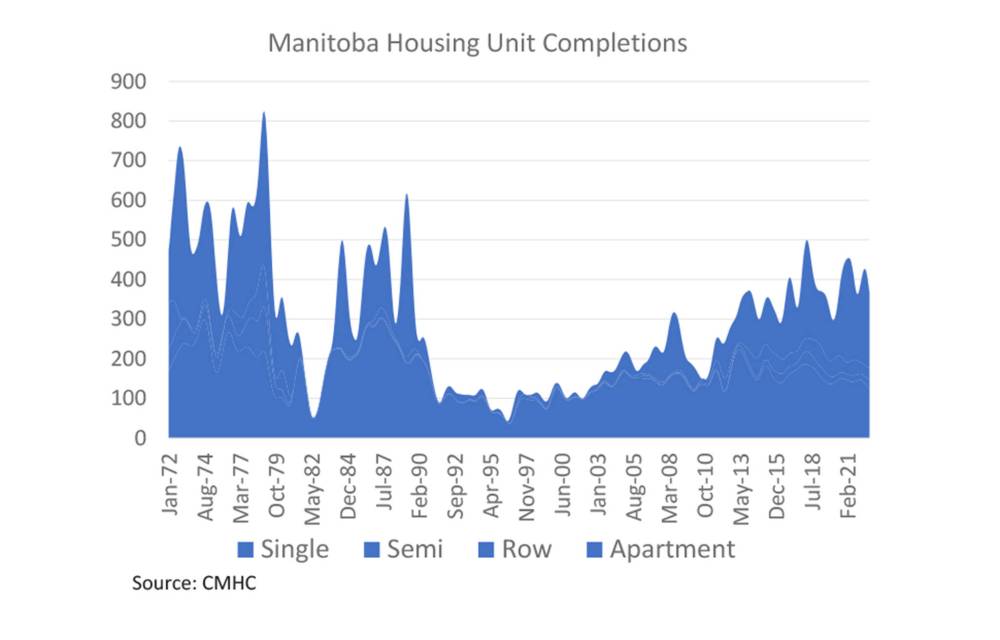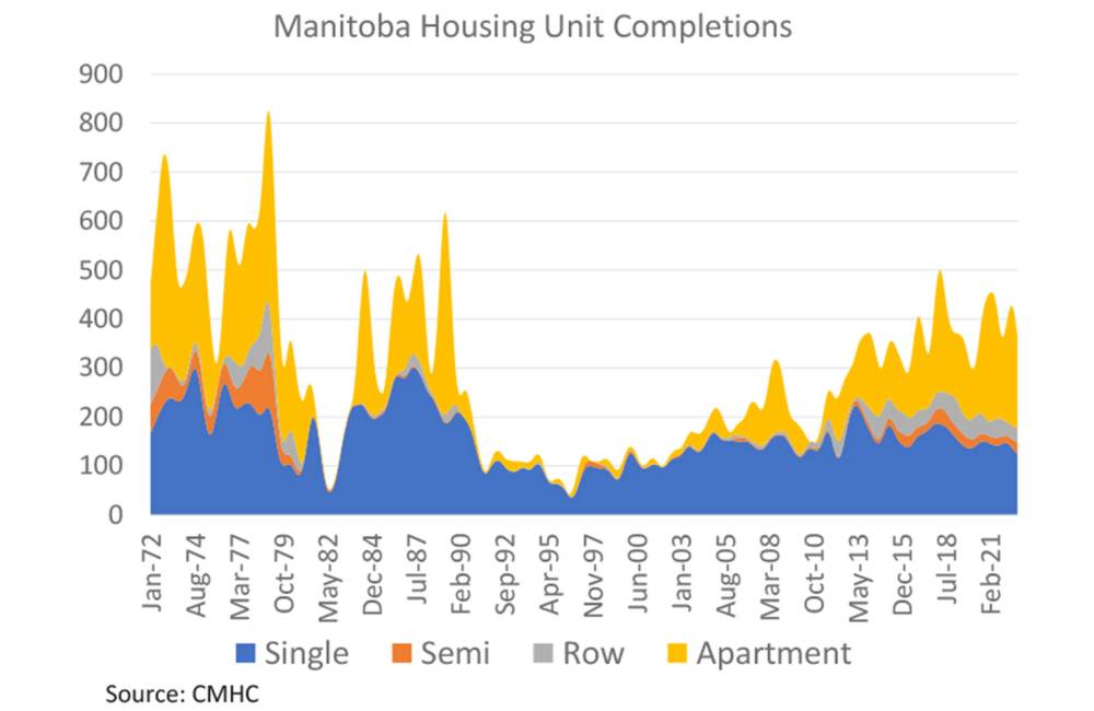 Further, more apartment units are being built than detached or row homes, CREA charts show.