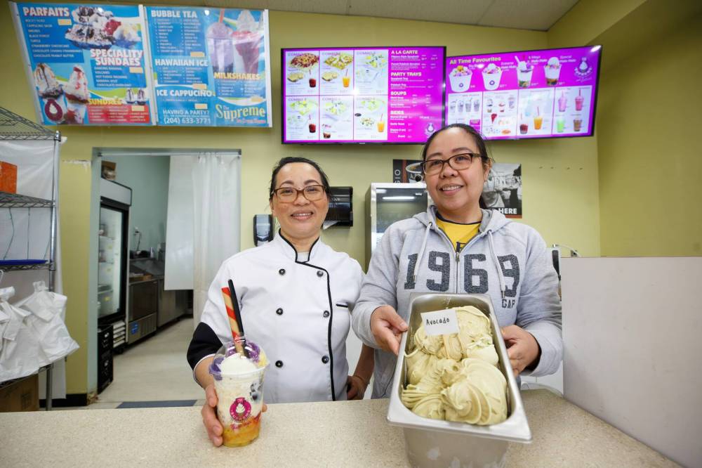 Still, she loves the business. People snake through the store waiting for cool treats on warm days; the shop blends Filipino cuisine with milkshakes and homemade gelati.