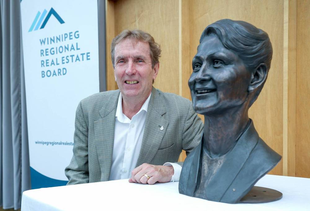 André Lewis, the artistic director of the Royal Winnipeg Ballet, with the bronze bust of Kathleen Richardson after unveiling ceremony Tuesday as part the Winnipeg Regional Real Estate Board’s Citizens Hall of Fame program at the Assiniboine Park Pavilion.