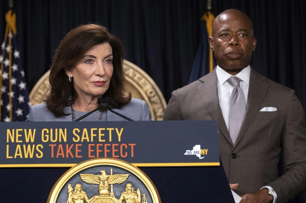 ALBANY, N.Y. (AP) — As more than 115,000 migrants arrived in New York City over the past year after crossing the border from Mexico, Mayor Eric Adams and Gov. Kathy Hochul begged President Joe Biden for one thing, above all others, to ease the crisis: “Let them work,” both Democrats have said repeatedly in speeches and interviews.