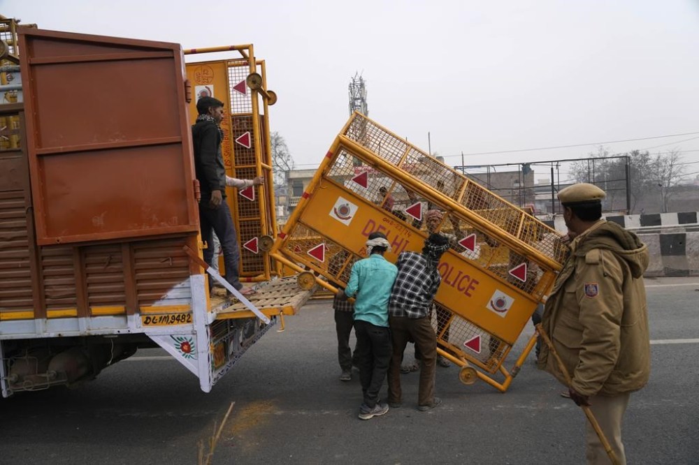 Police have sealed multiple entry points into the capital with barriers of giant metal containers, barbed wire, spikes and cement blocks. The government has banned large gatherings in the capital and suspended internet service in some districts of neighboring Haryana state to prevent communication among the protesters.