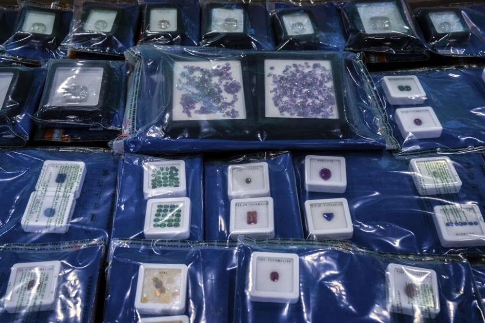 Officials have confiscated electronic devices, documents, and over 8,000 carats of suspected synthetic gem stones apparently meant for export to India.