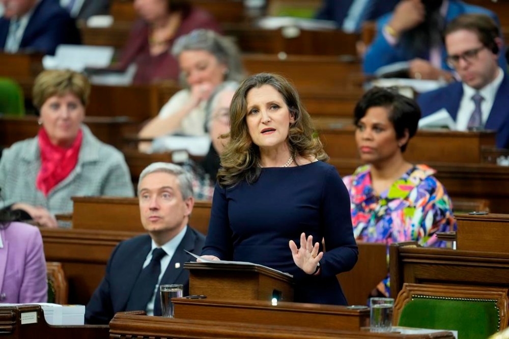 Deputy Prime Minister and Minister of Finance Chrystia Freeland presents the federal budget in the House of Commons in Ottawa on Tuesday, April 16, 2024. Tuesday's federal budget announced several measures affecting the banking sector, including long-promised details about a framework for open banking. THE CANADIAN PRESS/Adrian Wyld