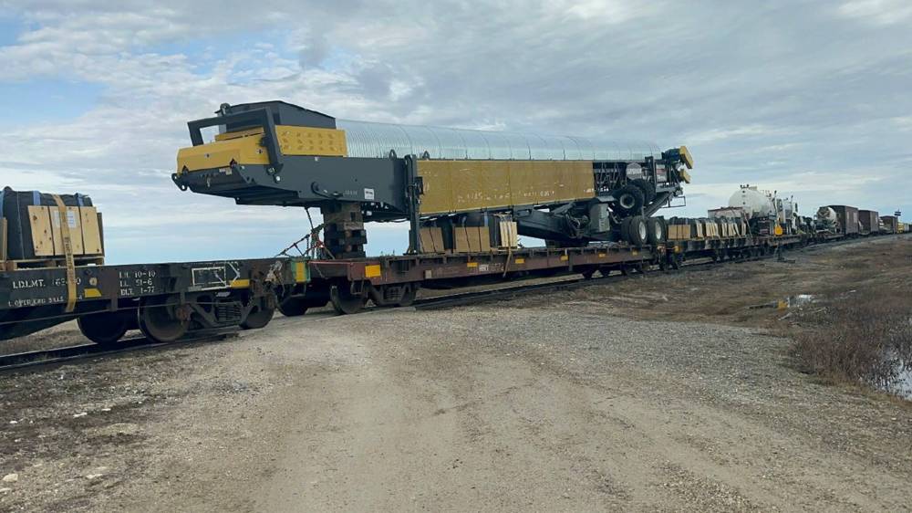 SUPPLIED A train flat bed arriving in Churchill with equipment for the Zinc concentrate capital project.