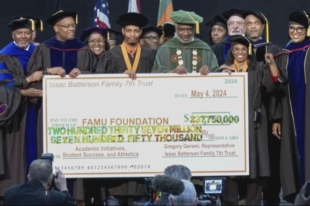 And so, the first weekend of May, Florida A&M University celebrated Gregory Gerami’s extraordinary contribution with all the necessary pomp. He spoke at commencement. Regalia-clad administrators posed with a jumbo check. Gerami even assured the audience that “the money is in the bank.”