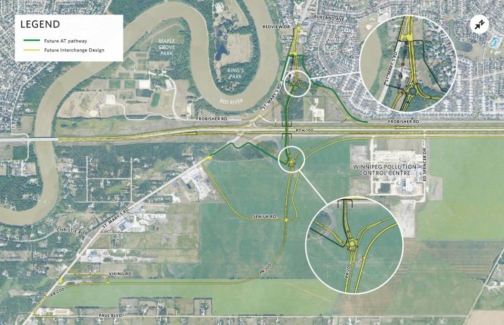 DuBois blames changes at the St. Mary’s Road and Perimeter Highway intersection. The $135-million interchange project, announced in 2020, involves a diamond-style interchange with roundabouts on north and south sides.