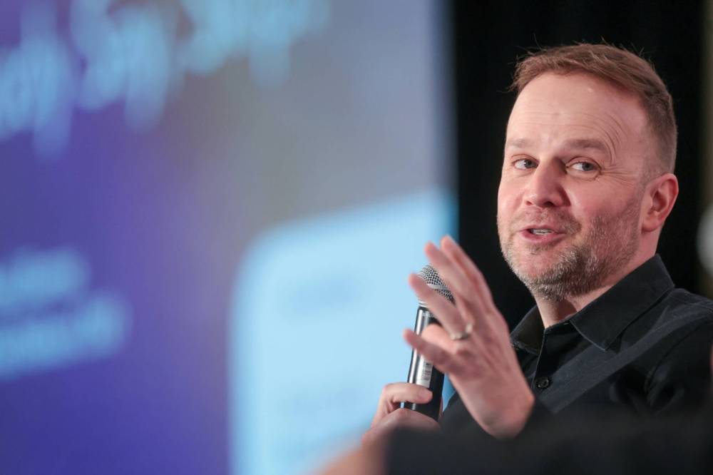RUTH BONNEVILLE / FREE PRESS FILES Toronto-based SkipTheDishes CEO Paul Burns at a Winnipeg Chamber of Commerce event in March. He shared ‘some difficult news’ for employees Tuesday.