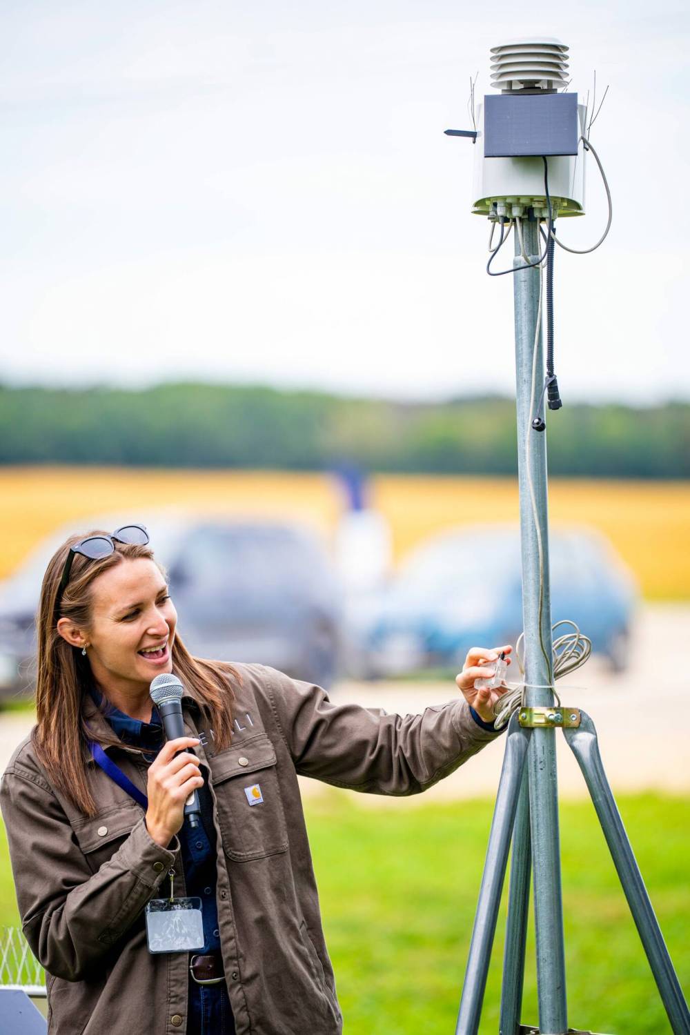 Emili Innovation Farms manager Leanne Koroscil gives a presentation on various sensors designed to show farmers how their fields are doing remotely at Innovation Farms.