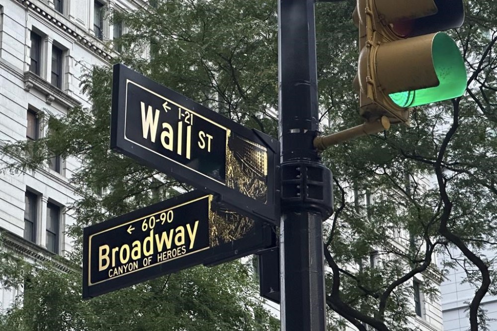 Signs marking the intersection of Wall St. and Broadway in New York's Financial District are shown on Wednesday, Oct. 9, 2024. (AP Photo/Peter Morgan, File)