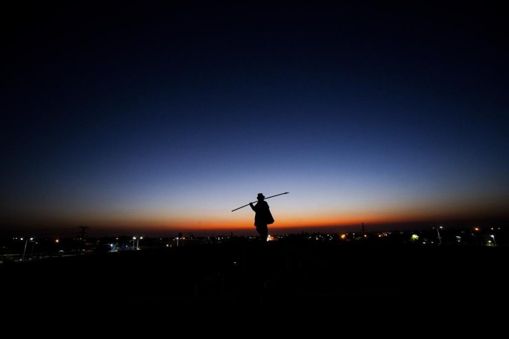 A monument to strongman Ángel Vicente “Chacho” Peñaloza, famed for defending La Rioja and other provinces in a historic 19th-century battle against national authorities, is silhouetted in La Rioja, Argentina, at dawn Friday, Sept. 13, 2024. In response to slashed federal budgets to provinces, La Rioja is printing a new emergency tender called "chachos" to pay state workers and spur the economy. (AP Photo/Natalia Diaz)