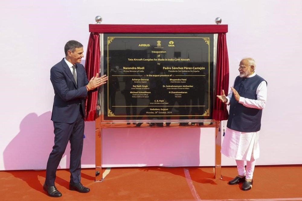 The two leaders then launched the Tata Aircraft Complex, the manufacturing hub that will produce the Airbus C-295 transport military aircraft in collaboration with Airbus Spain and to be deployed by the Indian air force.