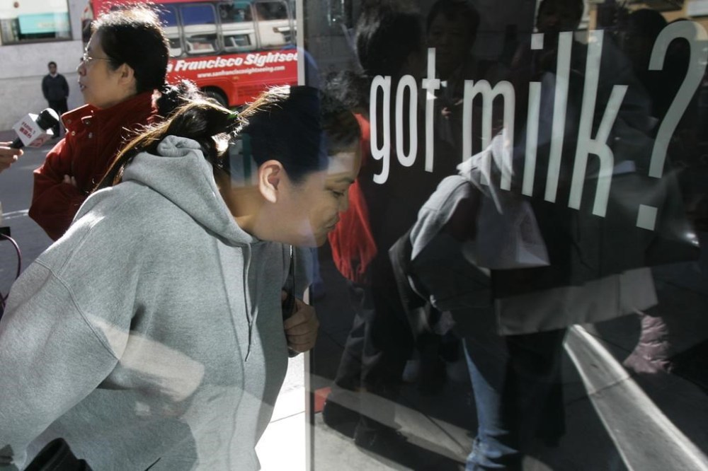 FILE - Ihrene Supapo smells the aroma around the new scented "Got Milk?" advertisement in San Francisco, Monday, Dec. 4, 2006. (AP Photo/Jeff Chiu, File)