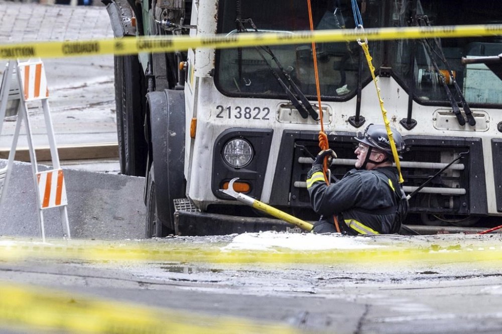 Downtown Omaha loses power for hours after a garbage truck gets stuck in a sinkhole