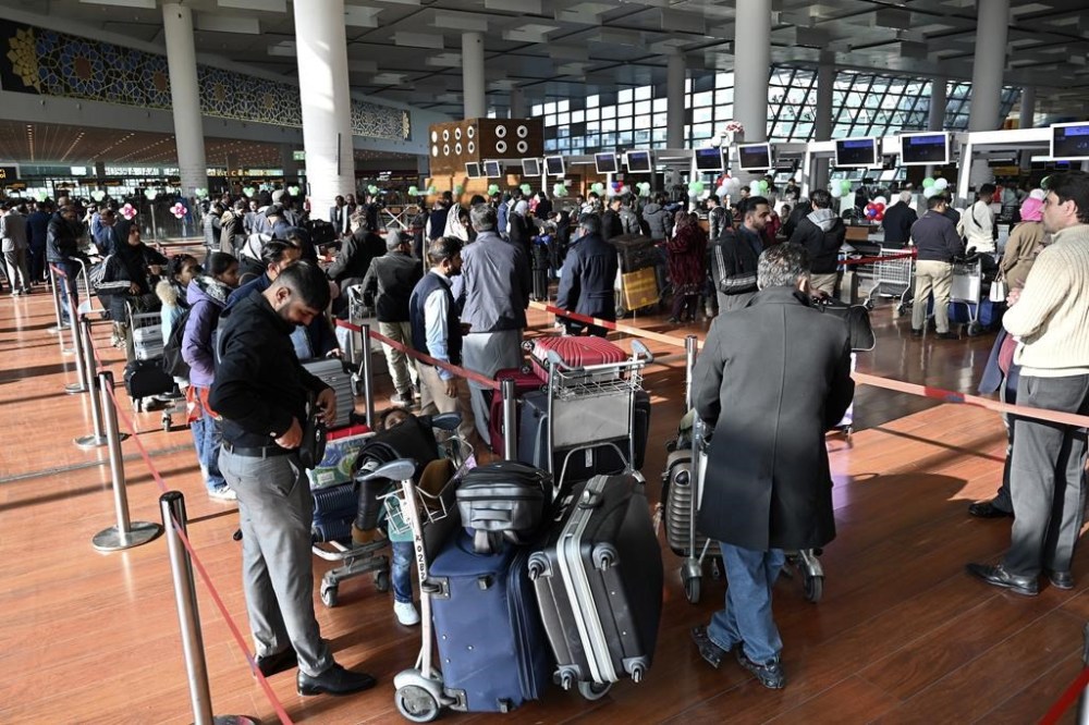 Passengers wait for their boarding in the state-run Pakistan International Airlines flight to Paris after the airline resumes direct flights to Europe after EU lifted a four-year ban, at the Islamabad International Airport, in Islamabad, Pakistan, Friday, Jan. 10, 2025. (AP Photo)